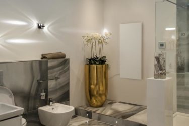 Spieki kwarcowe Laminam – płyty ceramiczne zastosowane w grzejnikach ThermoTile – umożliwiają w ramach tych systemów grzewczych różnorodność i możliwość komponowania designu. Grzejniki te pięknie integrują się z płytami podłogowymi i ściennymi Laminam lub z innymi materiałami.